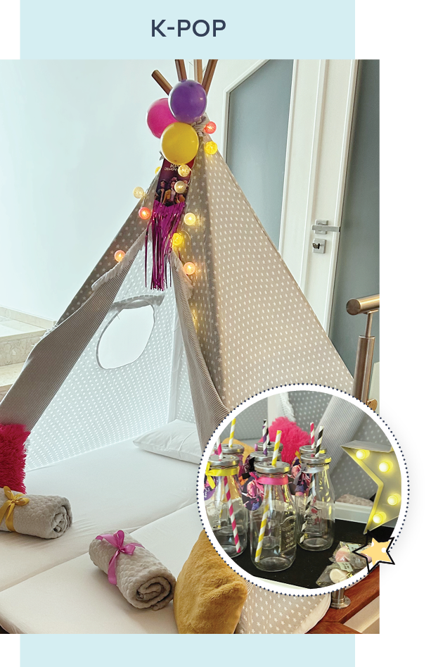 O clima contagiante do K-POP, garante ao tema muita dança, música e diversão! O mini karaoke incluído, completa a festa com um toque especial...